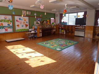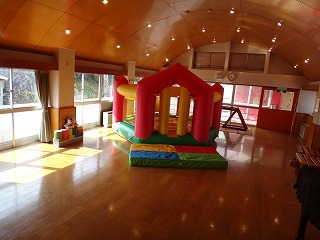 《 ホール 》 発表会などの行事や雨の日の保育などを行います。 ピヨチャンランドのお友達もここで遊びます。 |