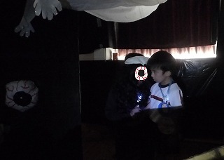 4つ目のミッションはお化け屋敷!! 怖くてドキドキだったけど先生からもらった 怖さを半分にすることのできる魔法の玉をもらって 勇気を出して順番に入りました! |