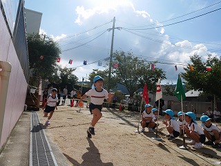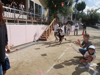 今年のかけっこは事前にみんなでタイム測定をして タイムの近い子でグループを作って行いました。 すると練習の中で何度も順位の入れ替わりがあり どうやったら勝てるかとスタートの仕方や走り方など それぞれが考えながら走りました! 順位はついたけれどみんな最後まで走りきって かっこよかったよ! 例年以上に盛り上がったかけっこになりました。 |