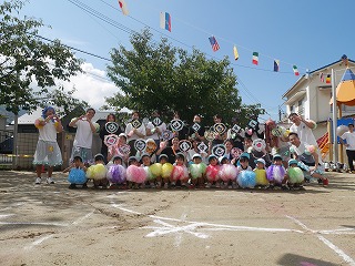 今年はスペシャルプログラムとしてお父さんお母さんが 『♫かわいいだけじゃダメですか?♫』を 踊ってくださいました! 子どもたちもポンポンで参加☆ 手作りのお父さんたちのかわいいコスチュームと お母さんたちが持つ子どもや先生の写真入りうちわ! 踊っているみんなも観ている会場の人たちもみんなが 笑顔になるプログラムでした♡ |