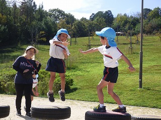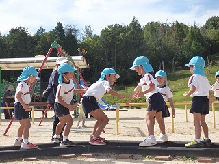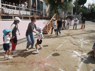 ひかり幼稚園を卒園したお兄さん・お姉さんたちも 障害物かけっこで参加してくれました。